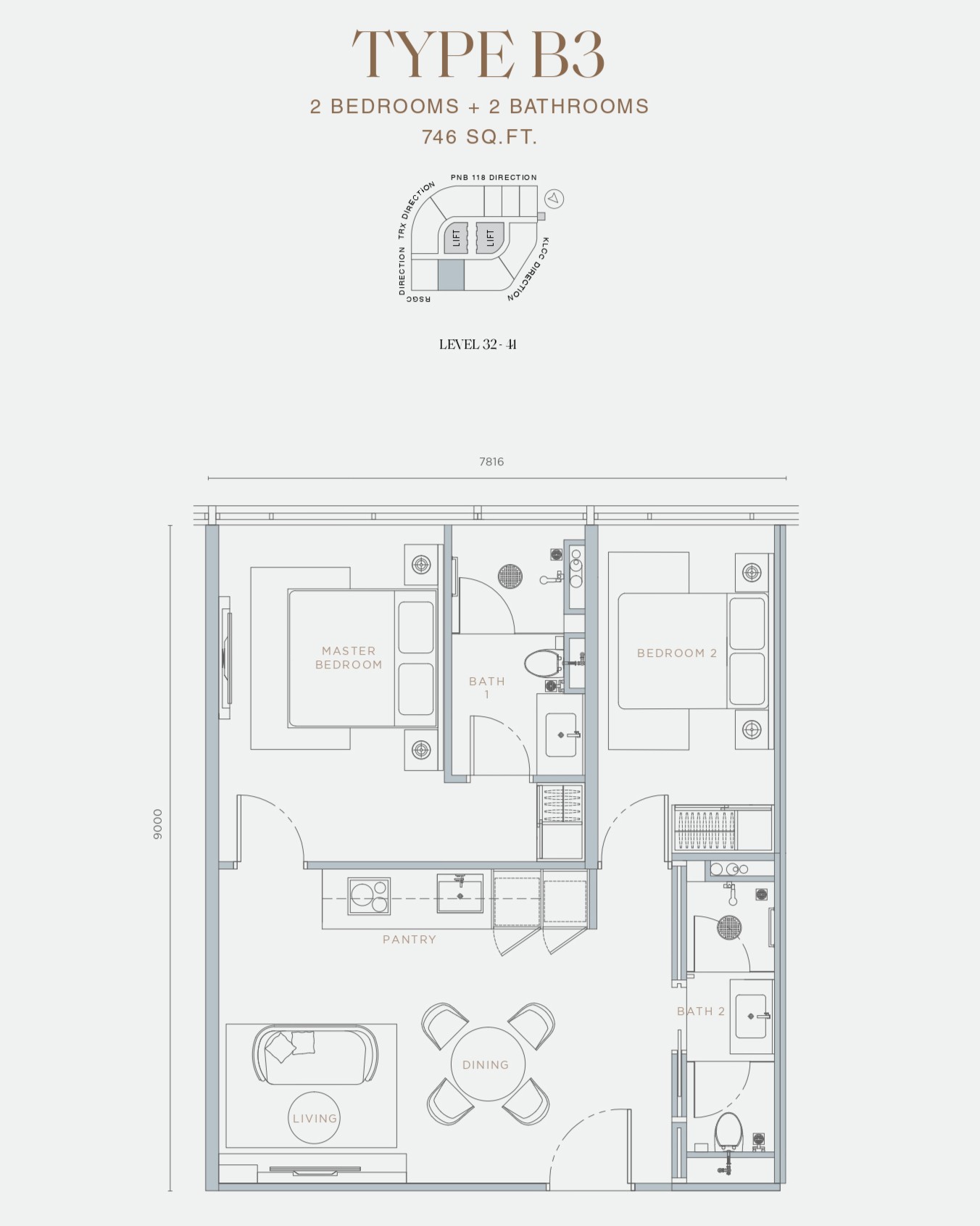 A freehold development located in the heart of Bukit Bintang, Kuala Lumpur. Featuring 298 meticulously designed units, ranging from compact studios to expansive penthouses , it caters to various lifestyles. Its strategic location places it within walking distance of Pavilion Mall, Starhill Gallery, and the Bukit Bintang MRT Station, offering unparalleled convenience and connectivity. Designed by an award-winning team, the property boasts premium finishes and cutting-edge architecture, including its iconic moiré-effect façade.